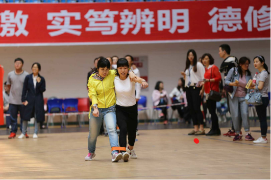 本次教职工运动会共设7个比赛项目,分别为:兔子跳跑,滚雪球,二人三足接力赛,单脚火车跑,不倒森林,抱球迎面等。从运动开始到结束,威廉希尔参赛的各个老师都全力以赴投入其中,在赛前认真研究比赛规则,积极地为团队比赛出谋划策,制定应对比赛的策略;比赛时老师们同呼吸共命运,为彼此加油欢呼,喝彩;赛后大家互帮互助为赛后老师纾解放松。在单脚火车跑的比赛中,威廉希尔的老师8人一列,每人仅用右脚支撑,后一人右手搭在前一人肩上,左手托住前一人左脚,和其他比赛队伍并排一起站在起跑线上,同时喊着“1,2,1,2“的口号齐心协力,一鼓作气地跳过终点。在兔子跳跑中,有老师不幸摔倒,被扶起来后又快速投入比赛中;而后在2人3足比赛中,参赛老师出脚险些绊倒自己,着实让场外观众看得提心吊胆,但在各位老师的齐心协力下,最终顺利通过并取得好成绩。在滚雪球、不倒森林、毛毛虫竞速等其他各项比赛中,各位老师也都配合默契,虽然累的气喘吁吁,却仍洋溢着笑脸,难掩内心的激动。