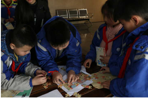 在带领小员工安全抵达雅安市博物馆后,活动负责人首先讲解了此次活动内容及注意事项,随后由馆内讲解员带领小员工参观博物馆。讲解以“南方丝绸之路”和“茶马古道”两条道路为主线,并通过数字化表现手段,多方位、多感官地向同学们呈现文物背后的历史。参观结束后,正式开启了博物馆奇妙之旅之游戏通关活动。游戏分为六个关卡,以“趣味文物蹲”热身游戏为开端,接着同学们根据参观内容,分组领取任务卡并依次完成“智力拼图”、“文物接龙”、“品茶——先苦后甜”、“我是小侦探”“瓶盖对对碰”六个知识趣味性活动。活动结束后,任老师发表感言,肯定了本次活动寓教于乐的意义,并表达了对组织此次活动的文管系师生的感谢。
