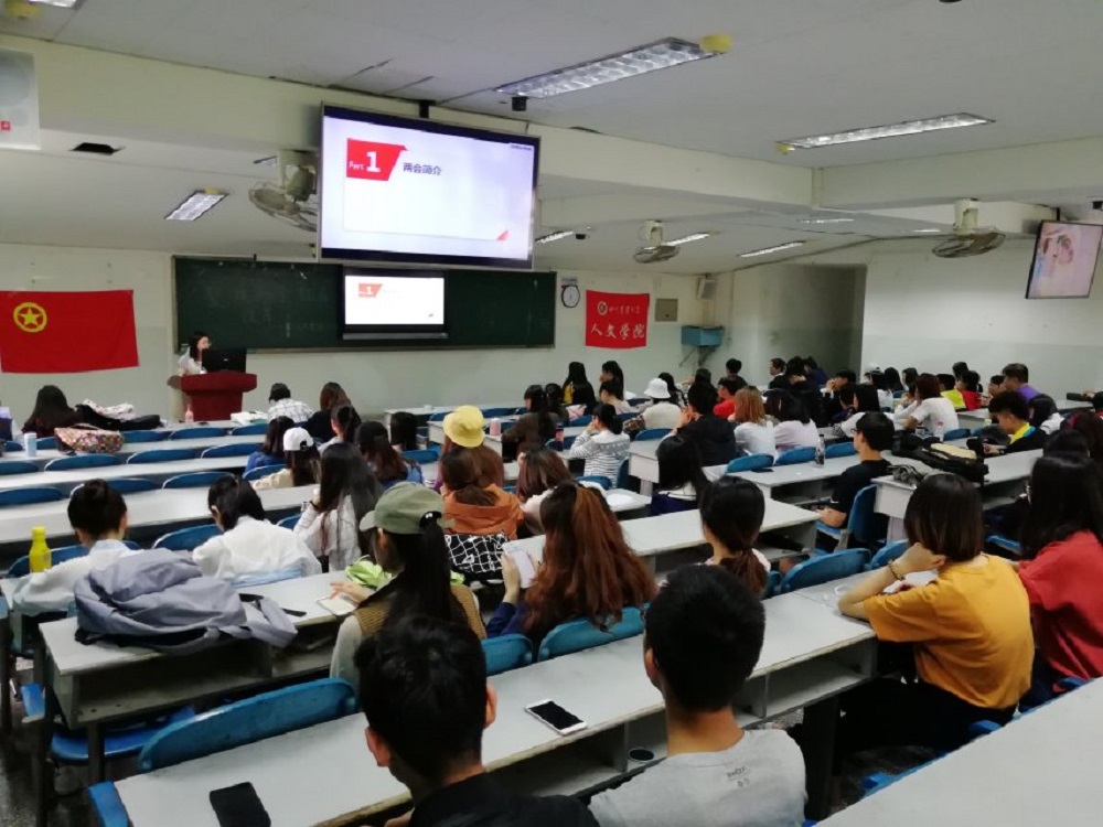 4月17日下午16:30,威廉希尔“聚焦两会教育改革”主题教育活动在一教A301教室顺利开展。来自学院15、16、17三个年级的约170名团干参与了此次活动。