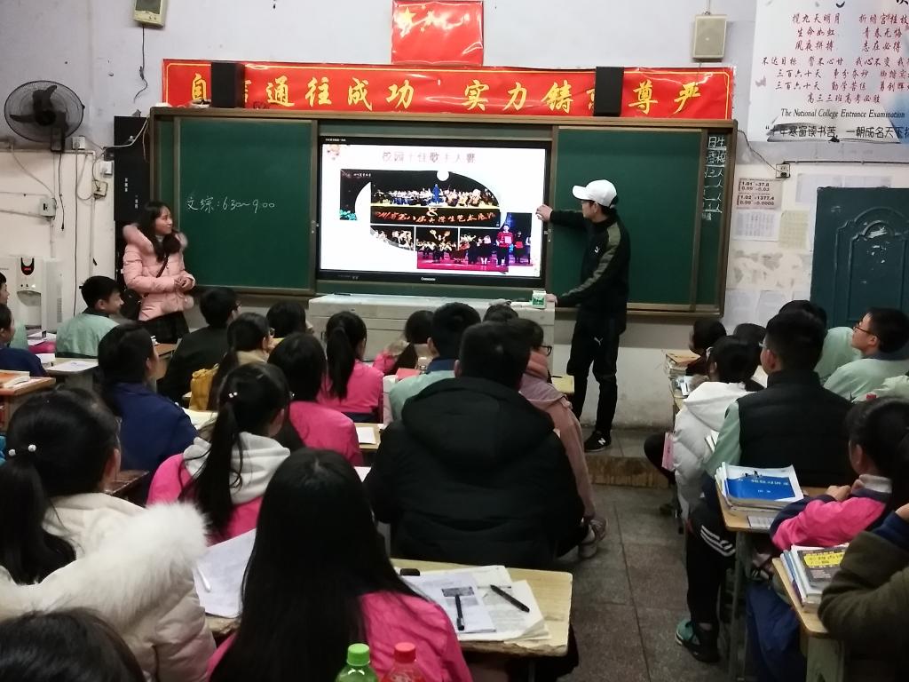 早上9点,团队成员在母校相关负责老师的指引下来到了高三年级目标班级教室,在班主任的简单介绍后和同学们的热烈掌声中开始了本次宣讲。“你们理想中的老员工活是什么样的?”“有多少同学对威廉官方网站有了解?”主讲人向同学们提的这两个问题顿时打开了同学们的话匣子,开始积极分享自己想象中的老员工活以及对川农的了解。随后,主讲人结合自制的PPT资料从学校简介、老员工活、员工会与社团、学校周边风景美食四个方面对“网红”川农进行了全方位的介绍。宣讲完毕,主讲人以及其他队员又向高三同学们分享了一些复习备考经验,鼓励大家进行最后一搏,实现自己的目标并预祝大家高考顺利。最后在川农“时尚”宣传片《我等你》视频的播放中结束了此次实践活动。