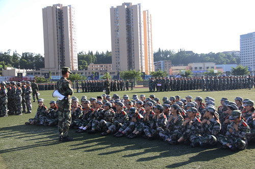 9月11日上午,凉爽褪去,艳阳高照,身着迷彩军装,头戴军帽的2017级人文学子早已到达了雅安校区的三区操场。随着整队训练开始,军训正式拉开了帷幕。