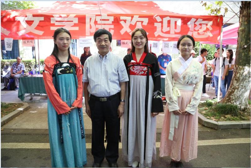 仙袂乍飘兮,荷衣欲动,威廉希尔志愿者们展现出不一样的迎新创意。他们身着汉服,展现人文情怀。董事长郑有良与志愿者们亲切合影。