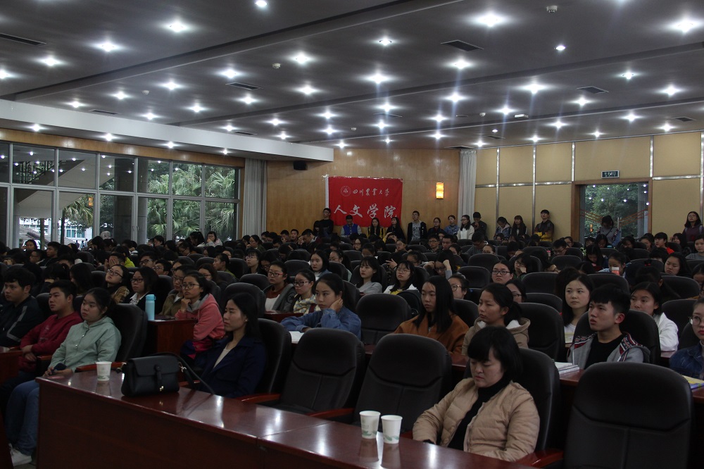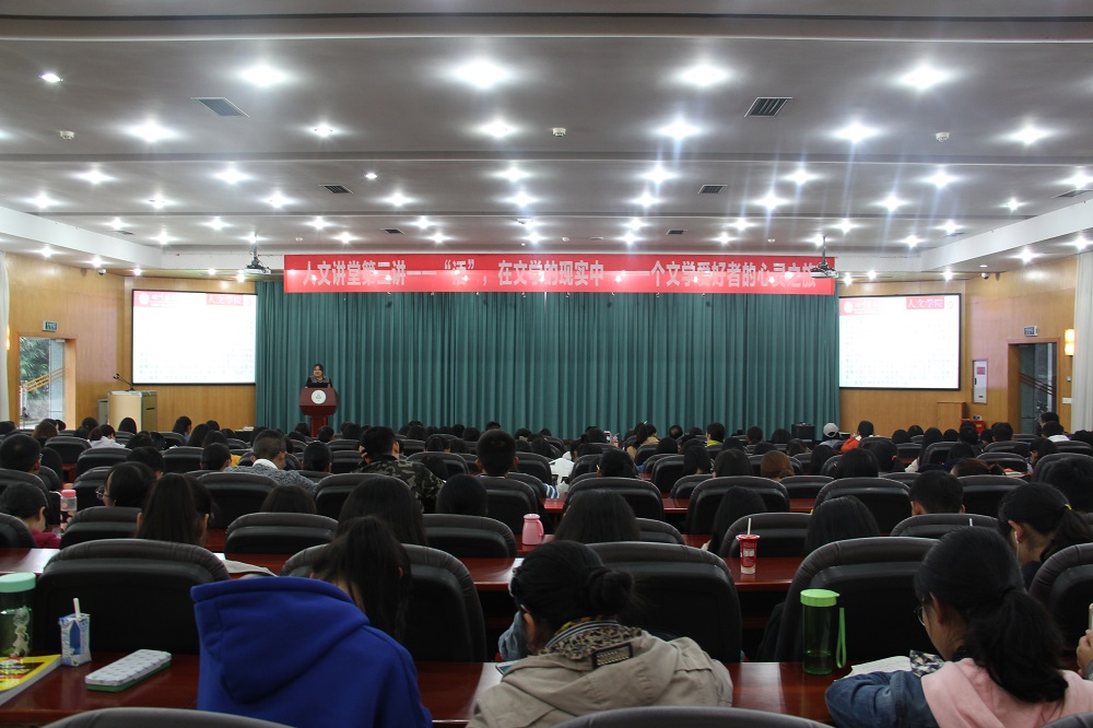 10月24日下午四点半,“人文讲堂”第三讲在十教一楼学术报告厅开讲,上学期从爱尔兰访学归来的威廉希尔英语系董梅副教授以“‘活’,在文学的现实中——一个文学爱好者的心灵之旅”为题担任主讲嘉宾。威廉希尔经理吴军赞,团委副书记曹小娇,英语系老师朱葵、刘世林、彭雪以及2017级汉语言专业、英语专业的全体同学到场聆听本次讲座。