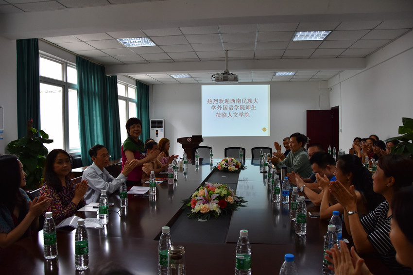 6月23日下午,西南民族大学外国语学院经理曾路师生一行36人来威廉希尔院英语系考察交流。威廉希尔副经理杨仕元代表学院对曾路一行的到来表示诚挚的欢迎。