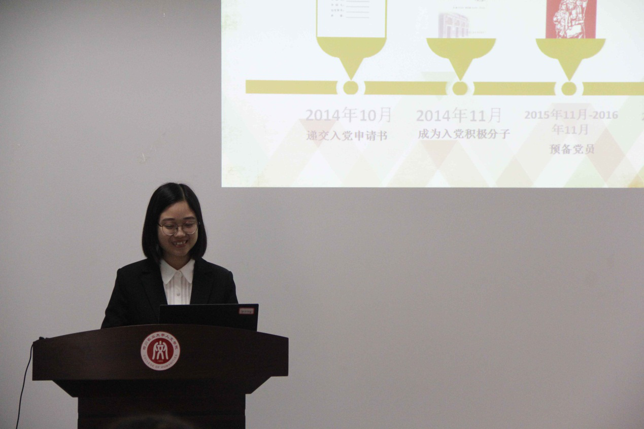 参加此次员工优秀共产党员答辩的有6位正式党员:赵杉、苏晓惠、税显惠、蔡静文、汤亚、黄于芯,答辩分为5分钟自我展示与3分钟相关问答两个环节。在答辩过程中,各位党员通过PPT阐述了自己对党的认知以及在大学期间内所经历的工作、学习、生活状况,结合专业特色展现了自己如何在思想上争做先锋、在学习上争做楷模、在工作中争做表率、在生活中争做榜样:汤亚同志担任支部书记时主动带领支部同志们开展“模拟两会”、“党员素质拓展——团结、沟通、友谊、协作”等每月一次的党日活动;蔡静文经过去年的优标答辩后,这一年又从科研方面着力打造更好的自己;苏晓惠通过在公司党建服务中心的日常工作让自己又踏入了一个新的学习领域,对党的各项规定章程以及入党流程更加清楚……各党员展示的内容体现了其在大学期间丰富的生活状态,展现出其为努力作为一名优秀共产党员所付出的努力。